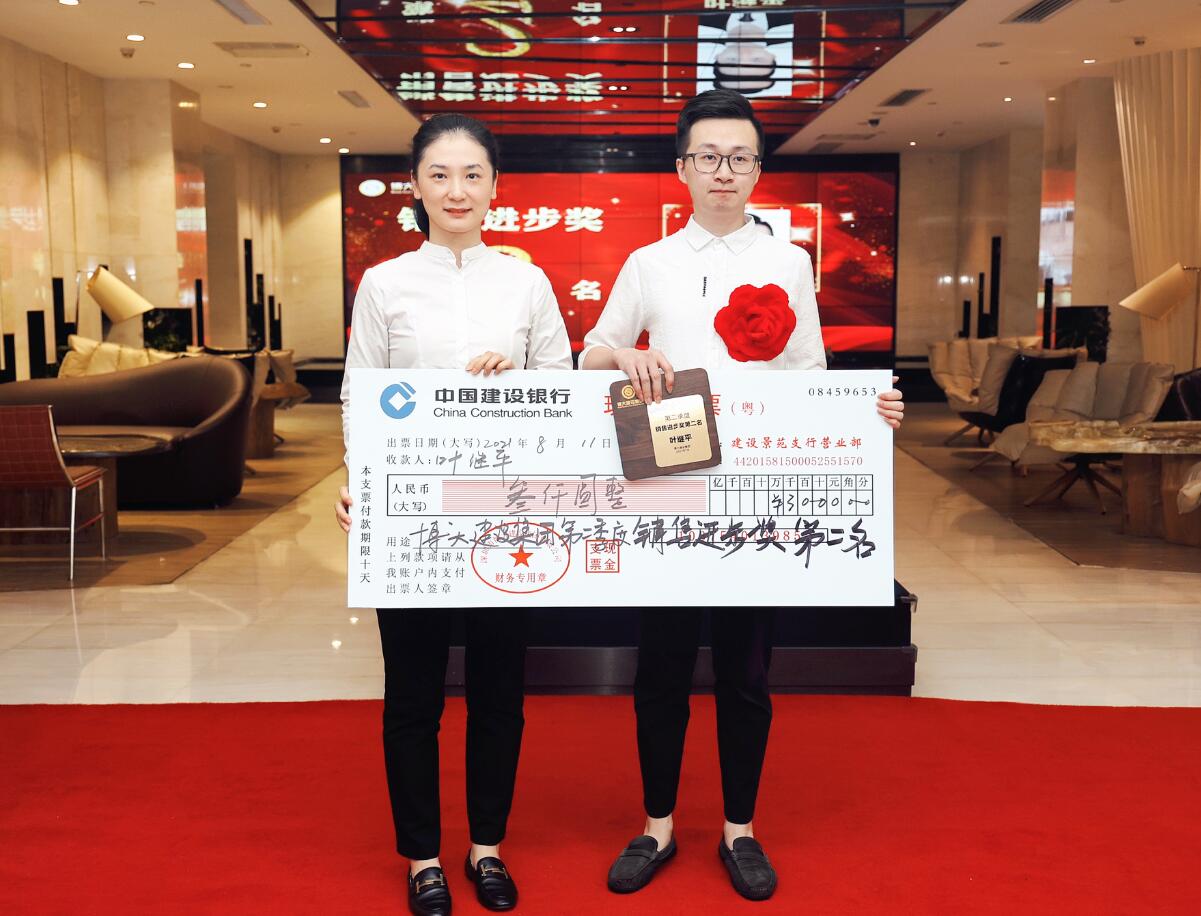 集團(tuán)董事、運(yùn)營(yíng)總裁黃悠為銷售進(jìn)步獎(jiǎng)獲得者葉繼平頒獎(jiǎng)
