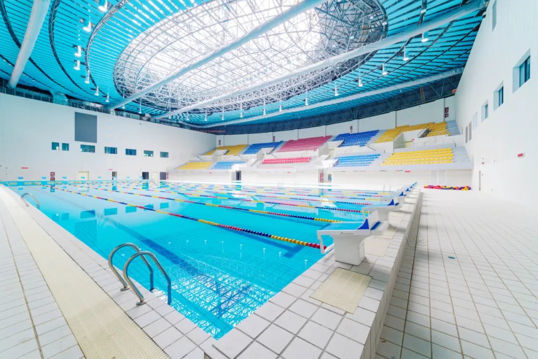 博大負責的施工區域涵蓋體育館、運動場、游泳館、人防地下室,聲學吸音等全部裝飾工程。其中運動場東、西看臺兩側均為弧形造型,現場工期緊、任務重,交叉作業多,協調難度大,配合要求高。